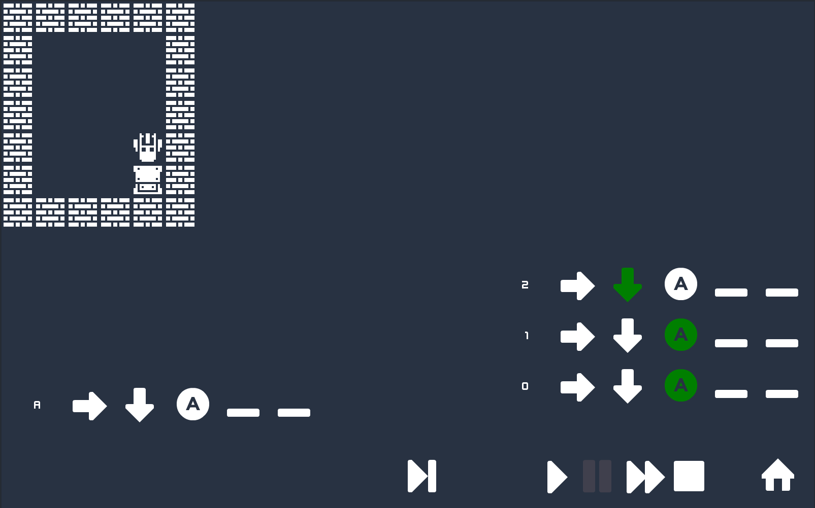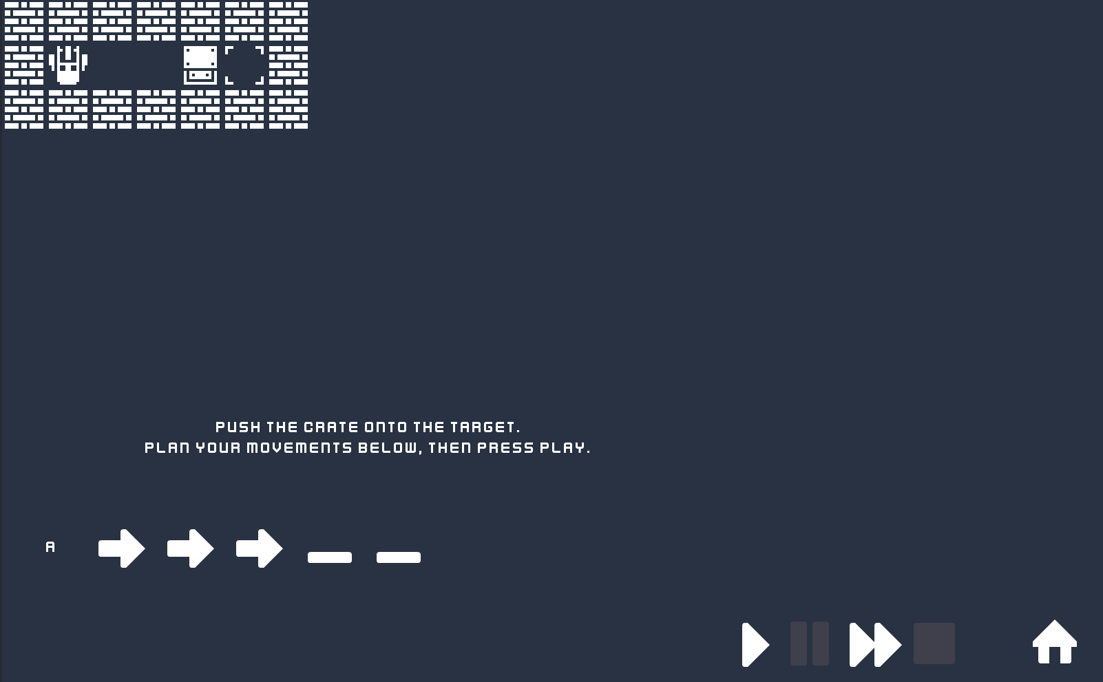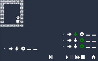 Change the movement commands in the lower left corner by clicking them. When you're ready to test your algorithm, press the play button and see what happens.